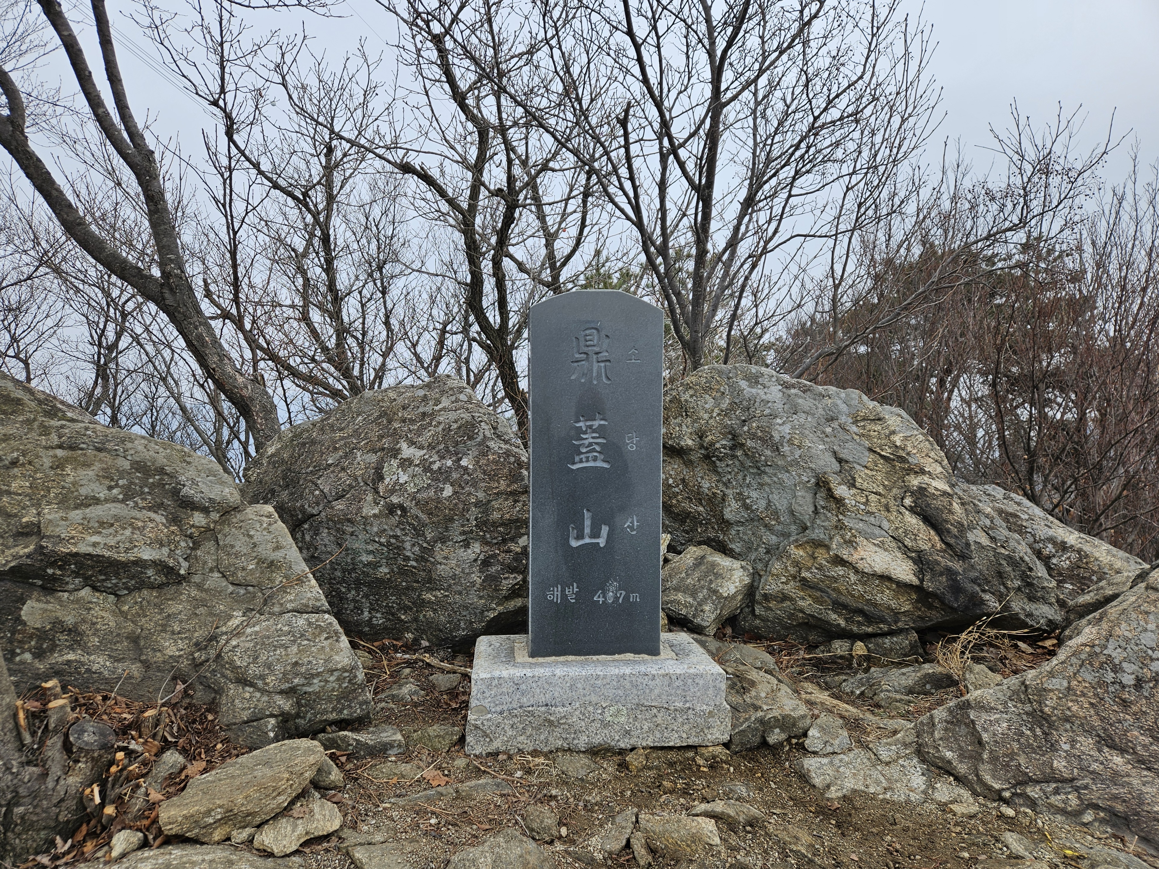 원적산 정상 표지석 앞이 가장 대표적인 인증 포인트예요. 탁 트인 배경 덕분에 사진도 예쁘게 나와요.